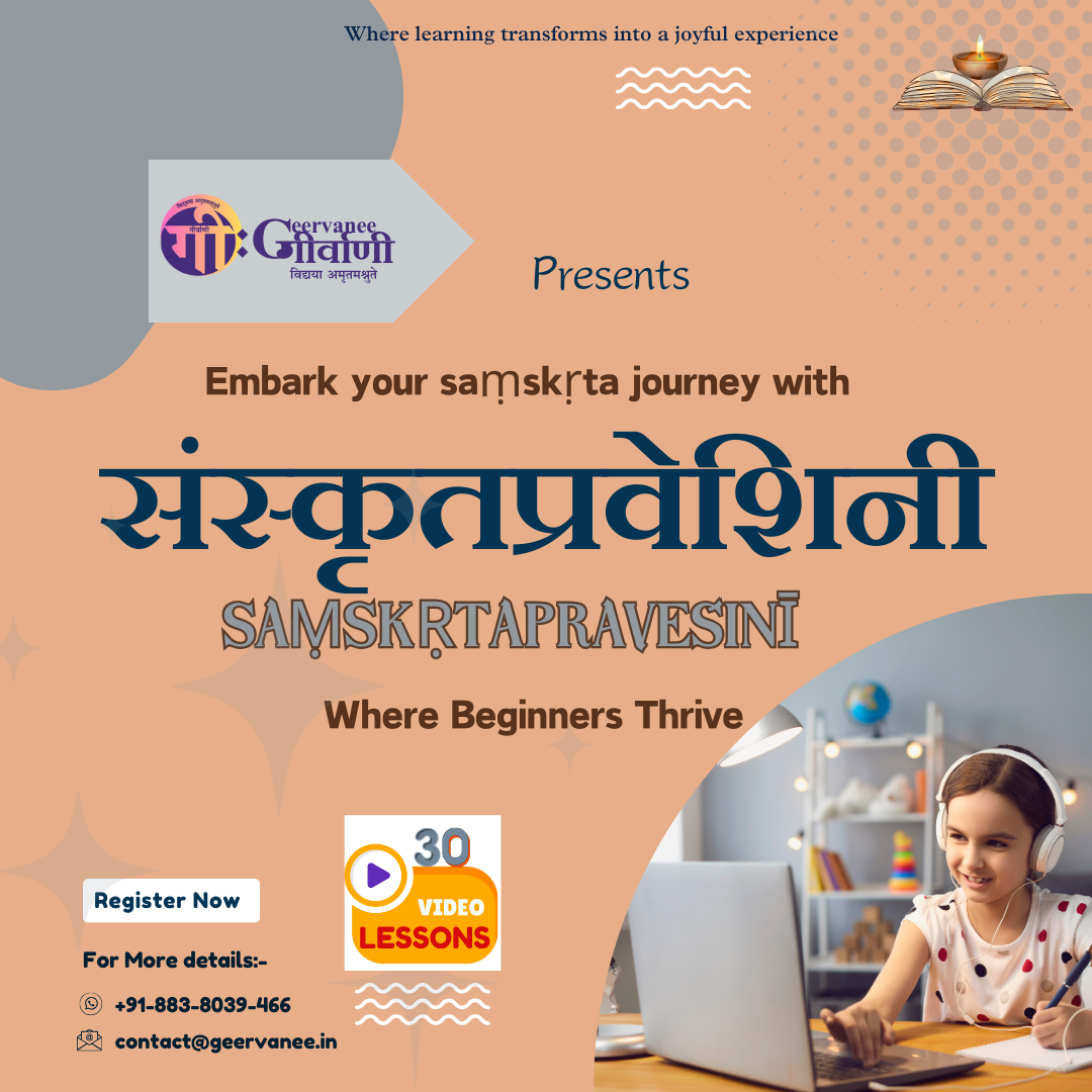 Geervanee offers a series of three Sanskrit learning courses, namely saṃskṛtapraveśinī, saṃskṛta-avagāhinī, and saṃskṛtavivecinī, designed to provide a comprehensive language learning experience and instill confidence in exploring this beautiful language.